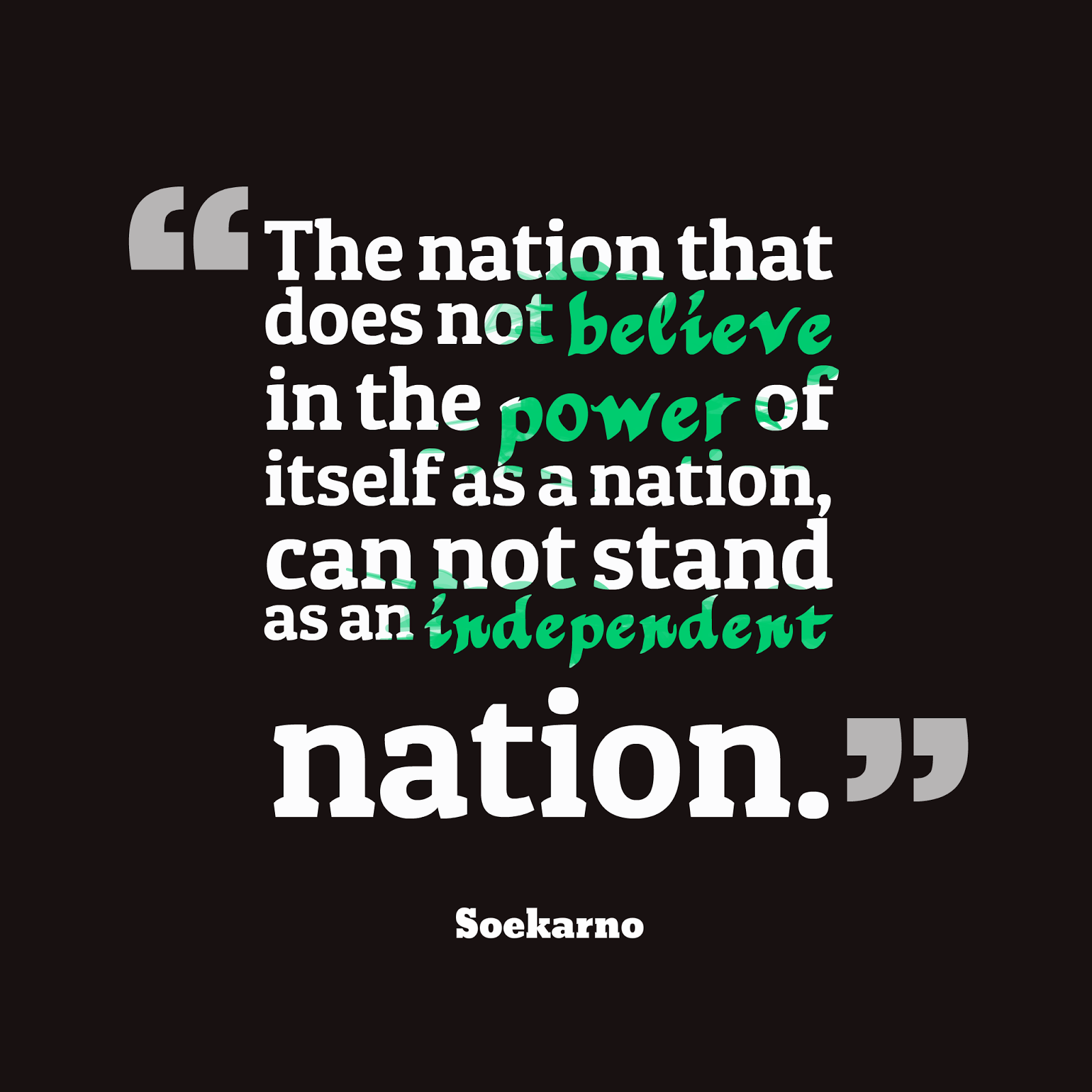 The nation that does not believe in the power of itself as a nation, can not stand as an independent nation. - Soekarno